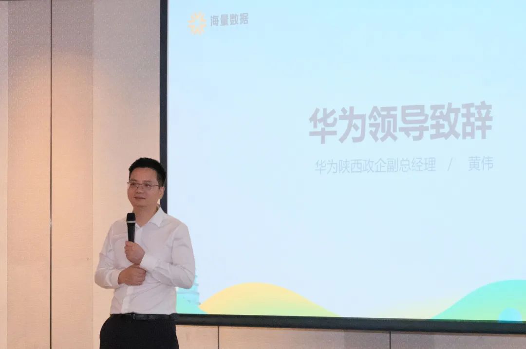 海量数据总裁肖枫、华为陕西政企副总经理黄伟为大会致辞。