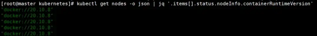 kubectl get nodes -o json | jq '.items[].status.nodeInfo.containerRuntimeVersion'