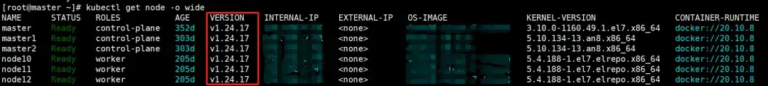 ./kk upgrade -f sample.yaml --with-kubernetes v1.24.17 --skip-dependency-check验证集群版本