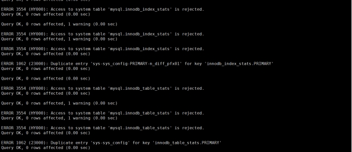 Query OK, 0 rows affected, 11 warnings (0.00 sec)