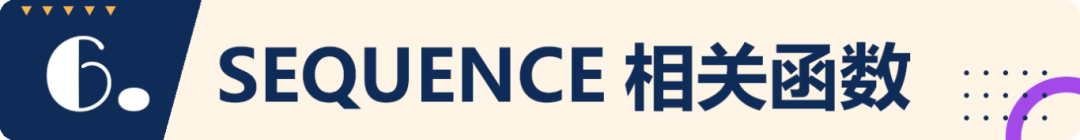 序列函数为用户从序列对象中获取后续的序列值提供了简单的多用户安全的方法。DWS目前支持以下SEQUENCE函数: