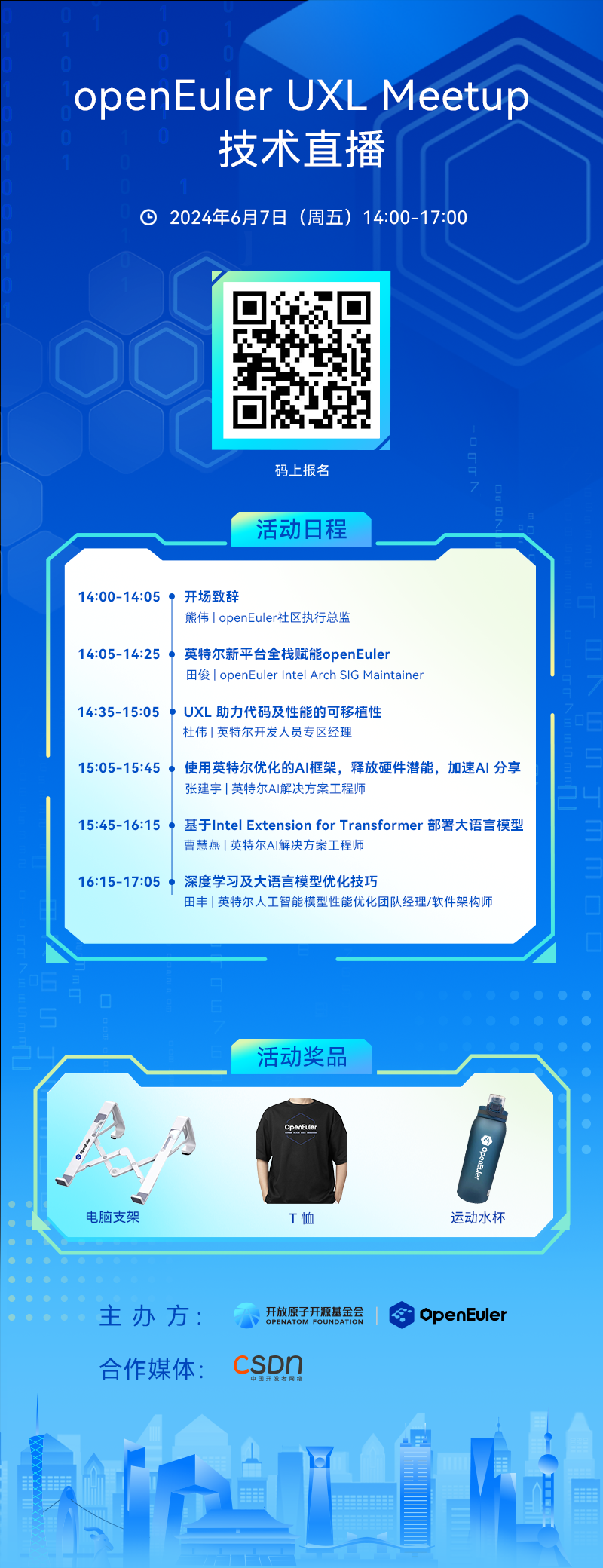 OpenAtom openEuler(简称"openEuler") UXL Meetup来啦!本次Meetup由openEuler社区和Intel联合发起,旨在深入探讨基于UXL (Unified Acceleration Foundation) 的oneAPI的实际应用与未来趋势,为开发者们搭建一个交流和学习的平台。