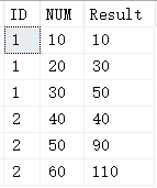 NUM+LAG(NUM,1,0) OVER (PARTITION BY ID ORDER BY NUM) AS Result