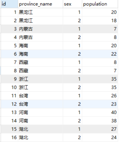 还是以上面的 t_province_population 为例,如果我们想要直观的知道各个省份的男、女数量情况,类似如下