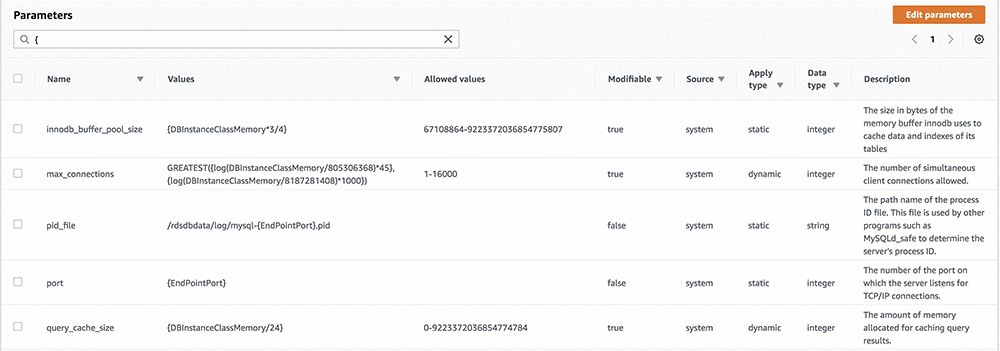 某些数据库实例参数包含变量或公式,其中变量值由常量确定。示例包括实例的大小和内存占用,实例的网络端口及其分配的存储。建议保持这些不变,因为只要执行实例向上或向下操作,它们就会自动调整。