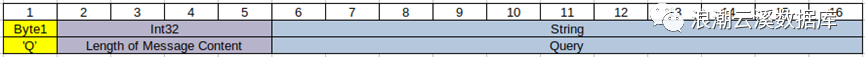 PostgreSQL协议中,客户端和服务器间的所有通信都是以消息为载体的。消息的第一个字节表示消息类型,其后4个字节用于表示除消息类型外消息剩余部分(包括长度自身)的长度(字节数),其余部分为消息内容,由具体的消息类型决定。由于历史原因,客户端发送的最初消息(启动消息)不包含消息类型字节。如下,图1和图2分别示意了启动消息和简单查询报文: