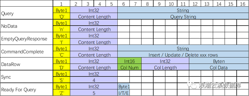 如希望了解更多的报文格式,请参阅PostgreSQL官方网站:52.7. 消息格式 (postgres.cn)