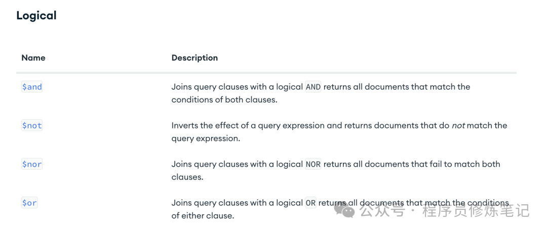 上述我们并没有使用$and,MongoDB对于上述写法默认会使用and对其进行连接。