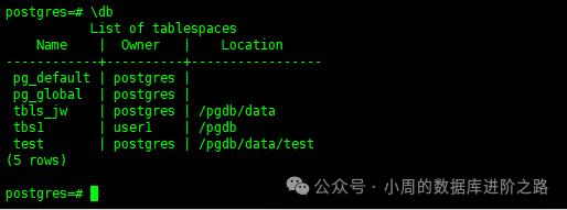 select pg_tablespace_location(oid); #查看表空间的位置