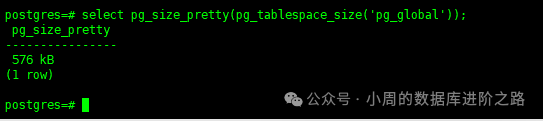 select pg_size_pretty(pg_tablespace_size('pg_global')); #查看表空间的大小