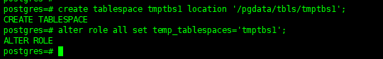 alter role all set temp_tablespaces='tmptbs1';
