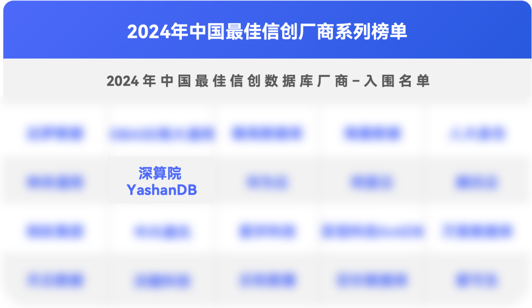 近日,YashanDB成功入选第一新声与天眼查联合发布的"2024年中国最佳信创数据库厂商榜单"。该榜单由甲方企业高管、产业专家、一线投资机构合伙人等专家历时三个月严格评审而出,为用户的采购决策与投资导向提供宝贵参考。