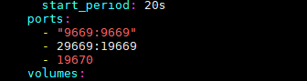 # 调整端口,将ws_http_port对应的端口映射出来# 使用29669,39669,49669对应graphd服务的三个节点19669# 以下为部分内容,注意我有三个节点,都需要修改- 29669:19669- 29669:19669- 29669:19669