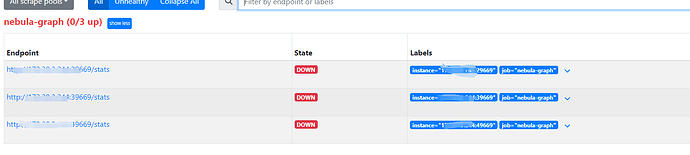 # 编辑配置文件vim prometheus.ymlscrape_configs:- job_name: nebula-graphmetrics_path: /statsstatic_configs:- targets:- 127.0.0.1:29669- 127.0.0.1:39669- 127.0.0.1:49669# 重启服务docker restart prometheus