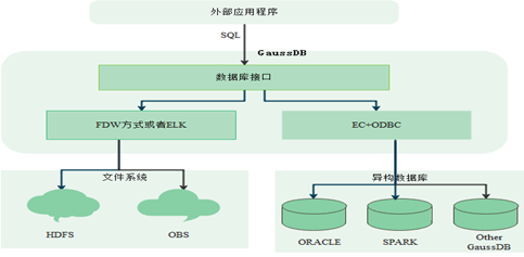 GaussDB(DWS)SQL On Anywhere针对大数据的文件系统的访问主要通过FDW或ELK机制(已停止演进)实现的,而跨数据库的访问主要通过EC+ODBC的方式实现的。
