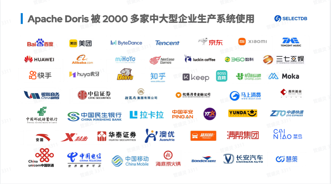至今为止,Apache Doris 已有4000+中大型企业在使用: