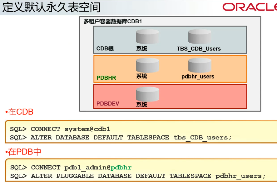 默认的表空间:如果在创建表的时候指定了表空间就会将数据放进指定的表空间,如果没有指定,那么数据就会存进默认的表空间。