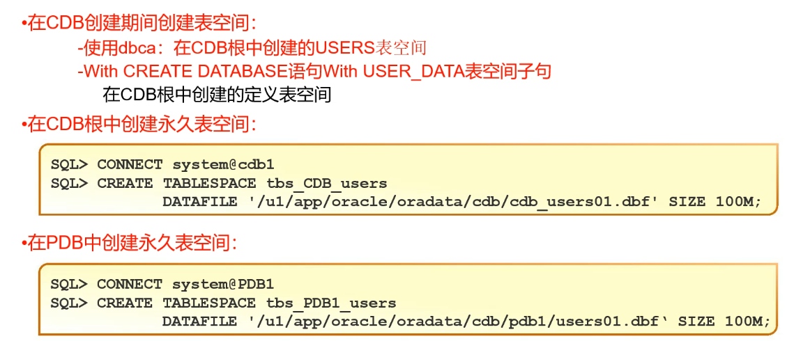 # 创建表空间如果不知道路径的话,可以用下面命令看一下pdb的路径,然后放到pdb的路径里面即可。