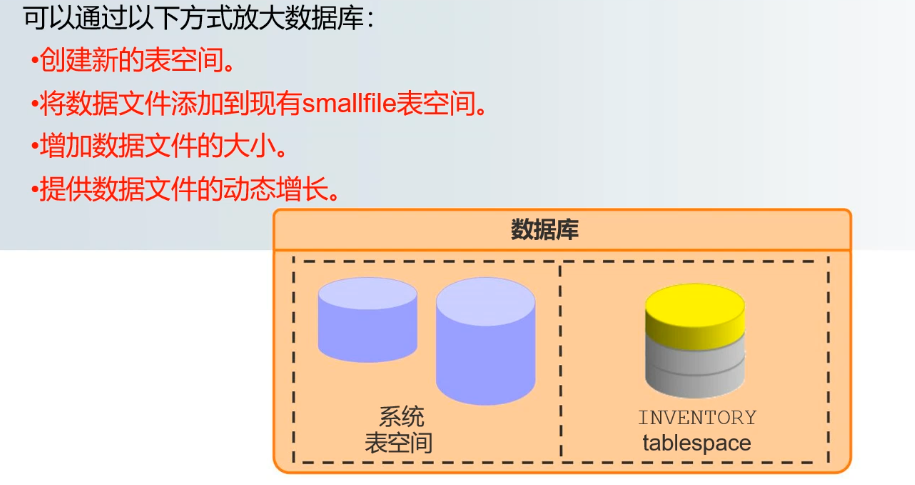 autoextend on next 50m;-----第二种方式:为表空间增加数据文件