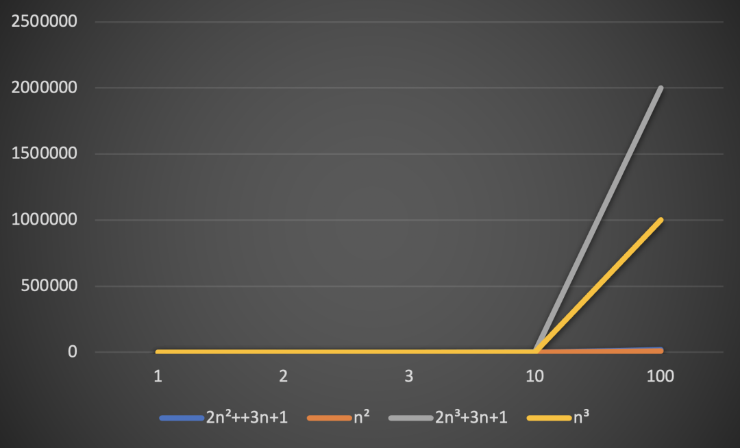 随着数据规模的增大,与最高次项相乘的常数可以忽略。