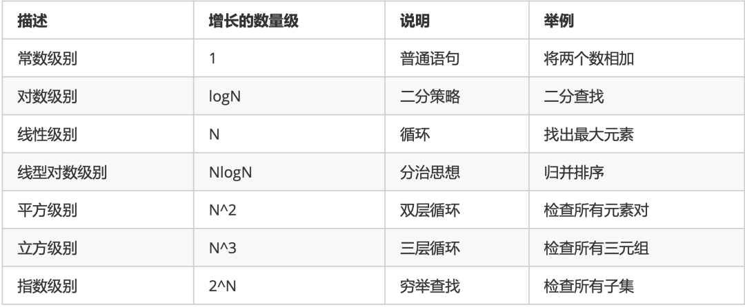 我们总结一下上面那些时间复杂度常常出现的应用场景。