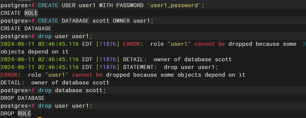 解析: C错误,超级用户可以删除任何用户是对的,但是它拥有数据库,直接删除不行,因为这会导致对象失去所有者,从而引发错误。其它同理,得先删除用户内依赖和对象。
