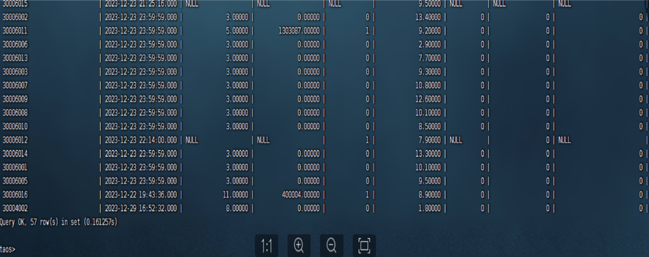 我们接触 3.0 的时间比较早,从 2022 年其刚刚发布时就在测试了。因此比较完整地见证了 TDengine 对于宽列表场各个方面的优化。以 last 函数的缓存为例(统计表/超级表中某列的值最后写入的非 NULL 值。),对于“宽列表 + 很多列的值以 NULL 为主”的场景,TDengine 的初次 last 查询速度从分钟级别迅速调整优化到了毫秒级。