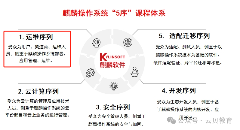 本课程为麒麟软件教育发展中心“5 序”课程体系-桌面运维序列的中级课程。通过本课程使学员掌握银河麒麟桌面操作系统常用命令的使用;熟练运用 vi 编辑器;掌握麒麟系统的用户和组管理;掌握设备管理和文件系统结构管理的使用方法。保证学生能够运用所学知识开发和部署基于国产操作系统环境下的系统管理。
