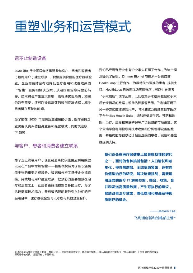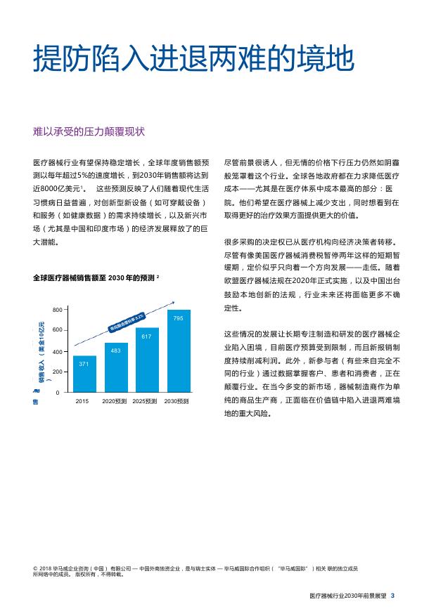 “仅仅靠制造设备,然后通过分销商销售给医疗服务机构”的日子已不复存在。价值是成功的新代名词,预防是最佳的诊治结果,智能是新的竞争优势。本文探讨在2030年,医疗器械公司如何通过“三管齐下”的策略取得成功。