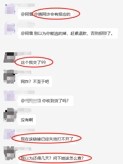 这是 2024年6月6日发生在社区微信群的真实案例。微信名“阿雪”(真实id未知)发了三条微信信息。