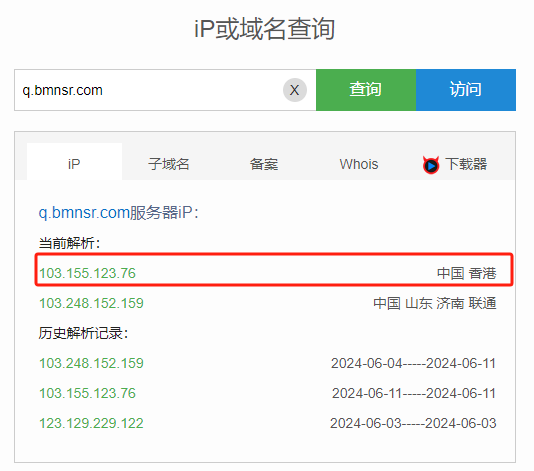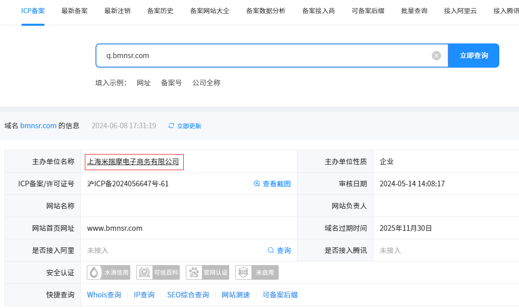 并且:q.bmnsr.com 大概率是子域名。一级域名 bmnsr.com 更加可疑。