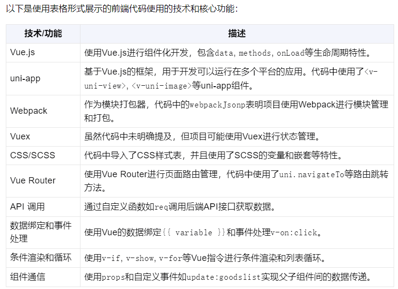 首页展示: 代码主要构建了一个电商平台的首页,包括商品列表、分类、搜索等功能。 商品列表: 通过goodsList属性接收商品数据,并在页面上展示商品信息,如图片、标题、价格等。 分类切换: 允许用户通过点击不同的分类来查看特定类别的商品。 搜索功能: 提供搜索框,允许用户输入搜索词并跳转到搜索结果页面。 轮播图: 使用 组件实现商品或广告的轮播展示。 下拉刷新和上拉加载: 集成了下拉刷新和上拉加载更多商品的功能。 页面滚动和触底事件: 监听页面滚动和滚动到底部的事件,可能用于加载更多数据或显示/隐藏某些元素。 交互效果: 使用CSS实现各种交互效果,如按钮点击效果、图片缩放等。电商平台的前端页面,主要功能包括:展示商品信息,提供用户交互界面,并与后端API进行数据交互。