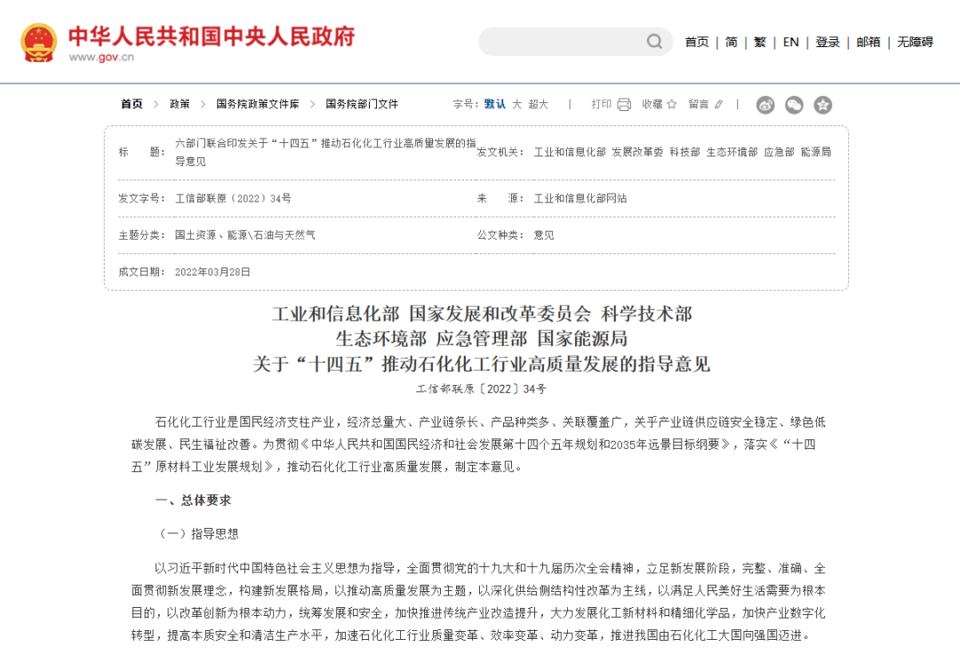 2022年,工业和信息化部等六部门近日印发《关于“十四五”推动石化化工行业高质量发展的指导意见》,其中提出到2025年,建成30个左右智能制造示范工厂、50家左右智慧化工示范园区。