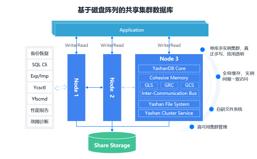 YashanDB共享集群(YashanDB for Cluster,YAC)是一款单库多实例的多活数据库系统,所有节点之间以强一致性方式实现并发读写,提供计算/存储扩展和金融级高可用能力,为高端核心业务提供了应用透明的透明多写、高可用、高扩展、高性能的数据库能力。