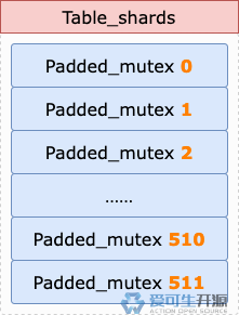 的数组,有 512 个单元,每个单元都保存了一个表锁互斥量。