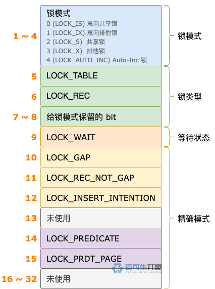 如果不能立即获得表锁,type_mode 属性的第 9 位会被设置为 1,表示这个锁结构对应的锁处于等待状态。