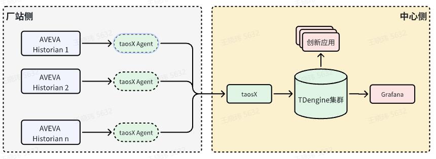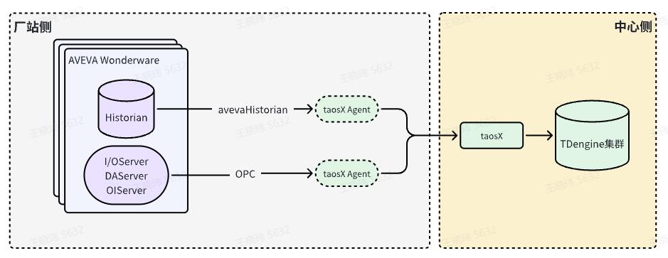 本文方案中,将利用 TDengine 企业版 taosX 的多数据源接入能力汇集多路 AVEVA Historian 现场数据,持久化至中心侧 TDengine 集群。