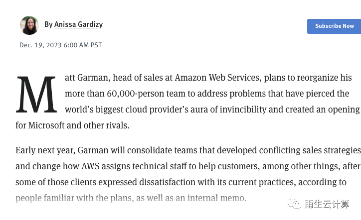 多年来,AWS的销售人员享受着从渴望租用其云服务器的客户那里接订单的舒适,而不是必须费力地去赢得他们。但是很多事情已经改变了。AWS不仅面临来自微软和谷歌的更激烈竞争,而且云客户越来越倾向于与多个云提供商建立关系——许多客户已经从微软那里购买生产力软件,其云销售人员利用这些现有关系。《The Information》