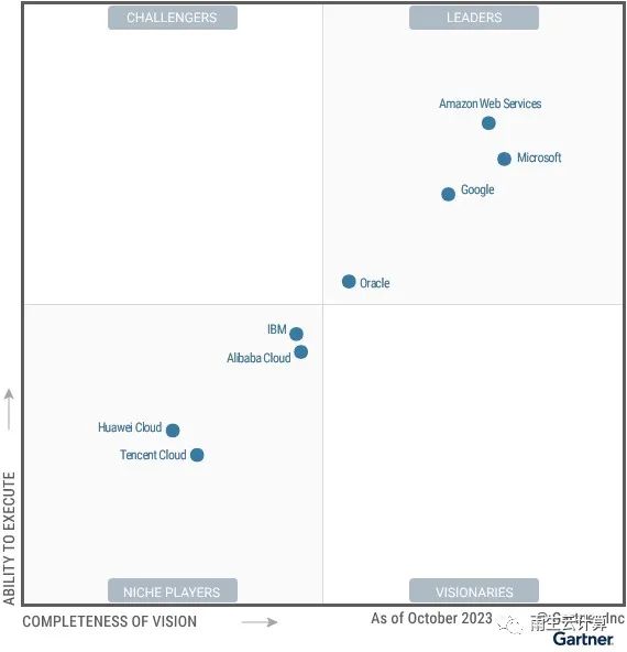 在Gartner最新发布的2023年云计算魔力象限报告中,今年的评估结果显示,云计算市场的竞争格局发生了显著变化,领导者象限的企业通过不断的技术创新和市场扩张巩固了自己的地位,而其他企业则在转型和增长上显得相对缓慢。一个现象是挑战者和远见者象限的空缺。 魔力象限将供应商分为四个象限:领导者、挑战者、远见者和利基者。领导者象限的供应商不仅在市场上具有强大的存在感,还展现出了对市场方向的深刻理解和影响力。挑战者则拥有强大的执行能力,但可能在愿景上稍显不足。远见者具有创新的愿景,但可能在实现这些愿景的能力上尚有不足。利基者虽然专注于特定市场领域,但在竞争力和市场策略上需要进一步加强。 1、没有远见者和挑战者,高处不胜寒2、只有云 Cloud与 “假装我是云”(Pretend to do Cloud两种