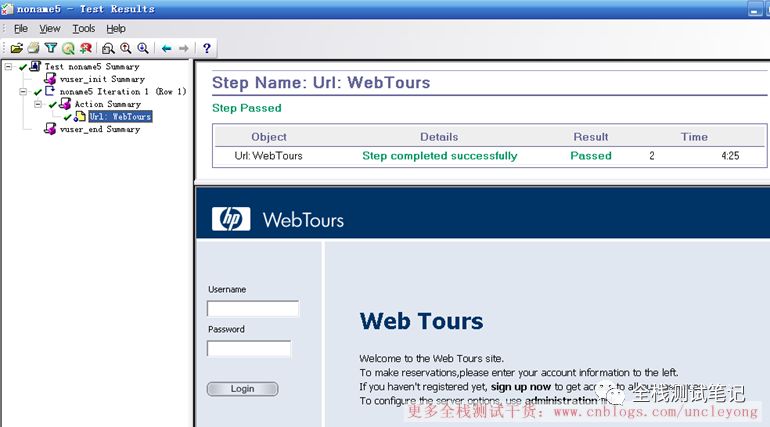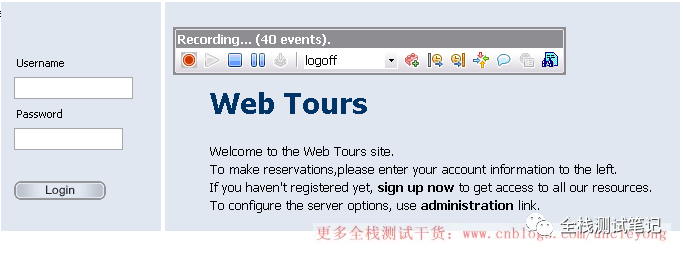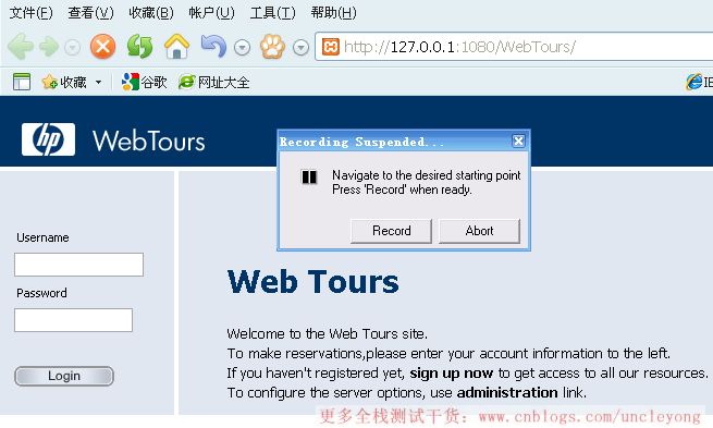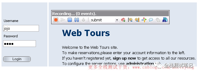 如果输入登录信息时就和服务器做校验,即和服务器产生交互(如AJAX技术),就先点击录制,然后输入用户名和密码,点击登录;否则可以输入完用户名和密码后,在点击登录前点击录制。登录成功后,再创建一个退出的action,命名为logoff点击退出后,事件个数为40个,再关闭网页,事件个数依然为40个,说明不会记录关闭网页的行为,即不关注客户端动作。查看结果,可以看到,首页、登录、退出都是Passed状态但是,我们点击到登录这里,提示没登录成功(是回放没登录成功)回放没登录成功(虽然显示Passed,但是业务不是我们期望的,因为loadrunner不关心业务)如果登录成功,该显示welcome,jojo等信息,如下图