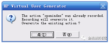 特别提醒:生成脚本过程中不能乱点鼠标,否则loadrunner可能会死掉。利用协议和字符集解析录制的过程,生成脚本代码(字符集不对可以问开发人员)最好先设计好Action,可以在录制每个Action前创建新的Action先对已经录制好的打开首页的action改名字,改为openindex 因为这里是补录,所以去掉下面的勾,然后点击【OK】
