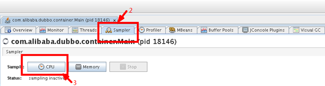 然后进入Sampler,在cpu波动的时候点击cpu进行抽样