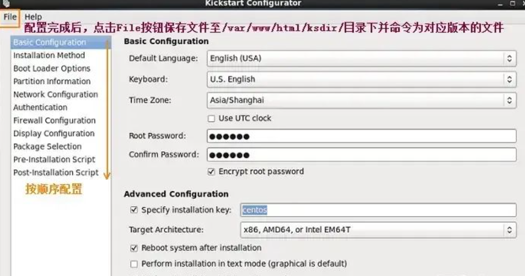 另外这一种是复制/root目录下的anaconda-ks.cfg文件加以修改,我们选择后者。