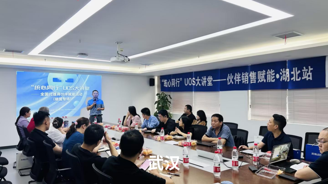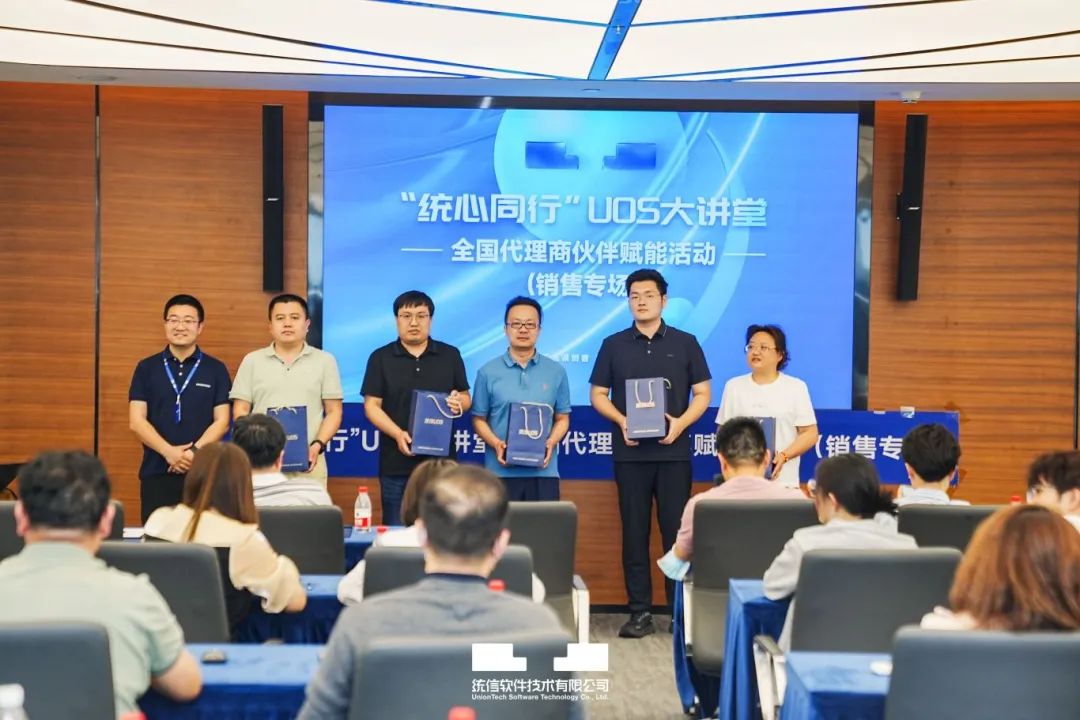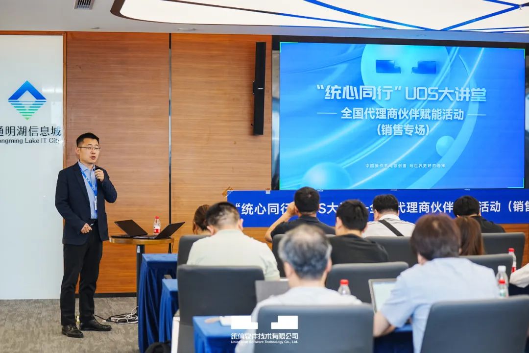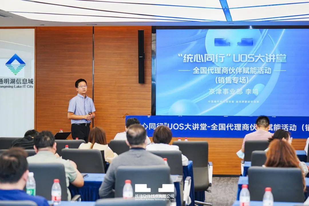 日前,统信软件成功举办“统心同行”UOS大讲堂——全国代理商伙伴赋能活动(销售专场)。此次活动采用线上线下同步进行的方式,覆盖全国11个城市,吸引近千名代理商伙伴参与其中。