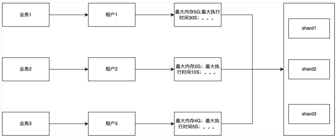 ClickHouse为了保障多业务稳定查询,支持了多租户,减少业务之间的影响。我们基于ClickHouse的多租户能力,给予每条产品线单独的租户,实现租户资源个性化配置,满足不同业务不同优先级的诉求。