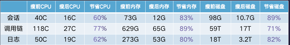 后来将调用链/日志/会话的几个ES集群全部迁移到ClickHouse之后: