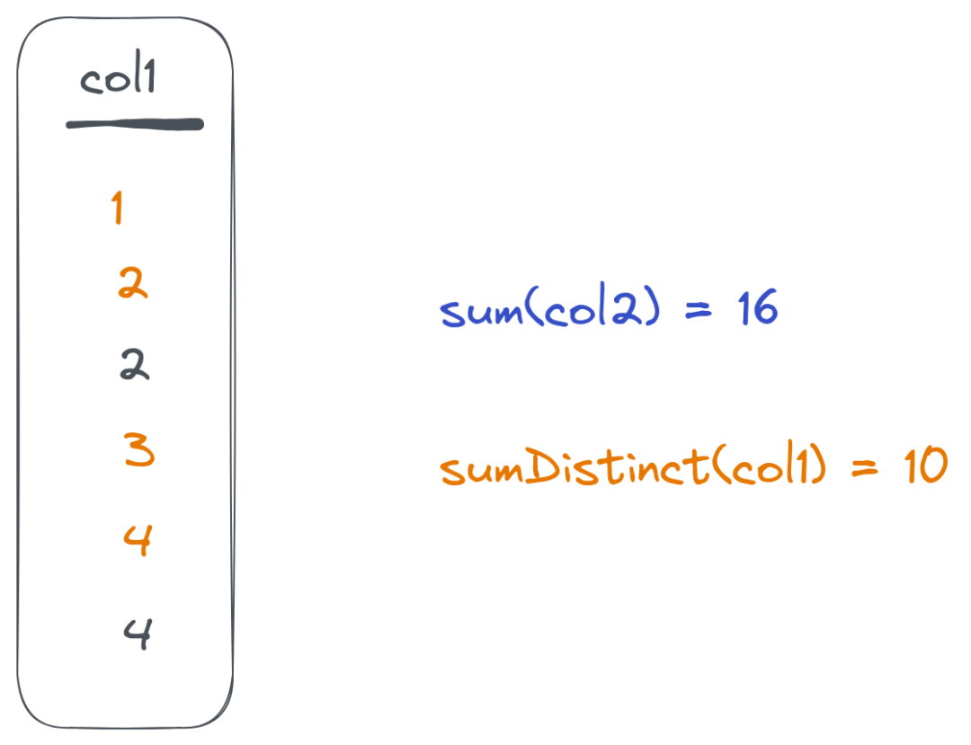 一旦将 Distinct 添加到聚合函数中,它就会忽略重复的值: