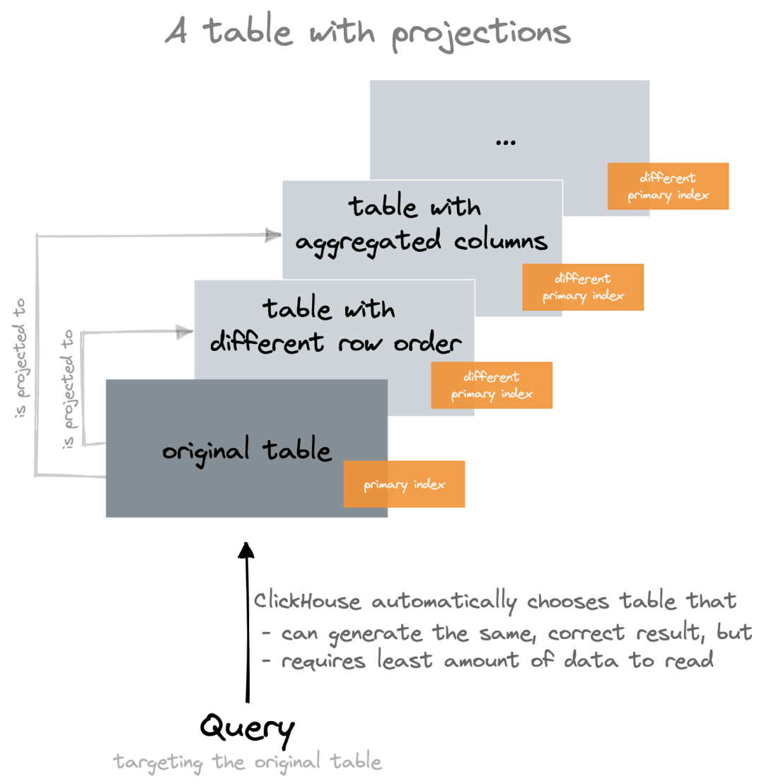ClickHouse 有一个方便的新的即插即用功能来实现这个想法:投影Projections!