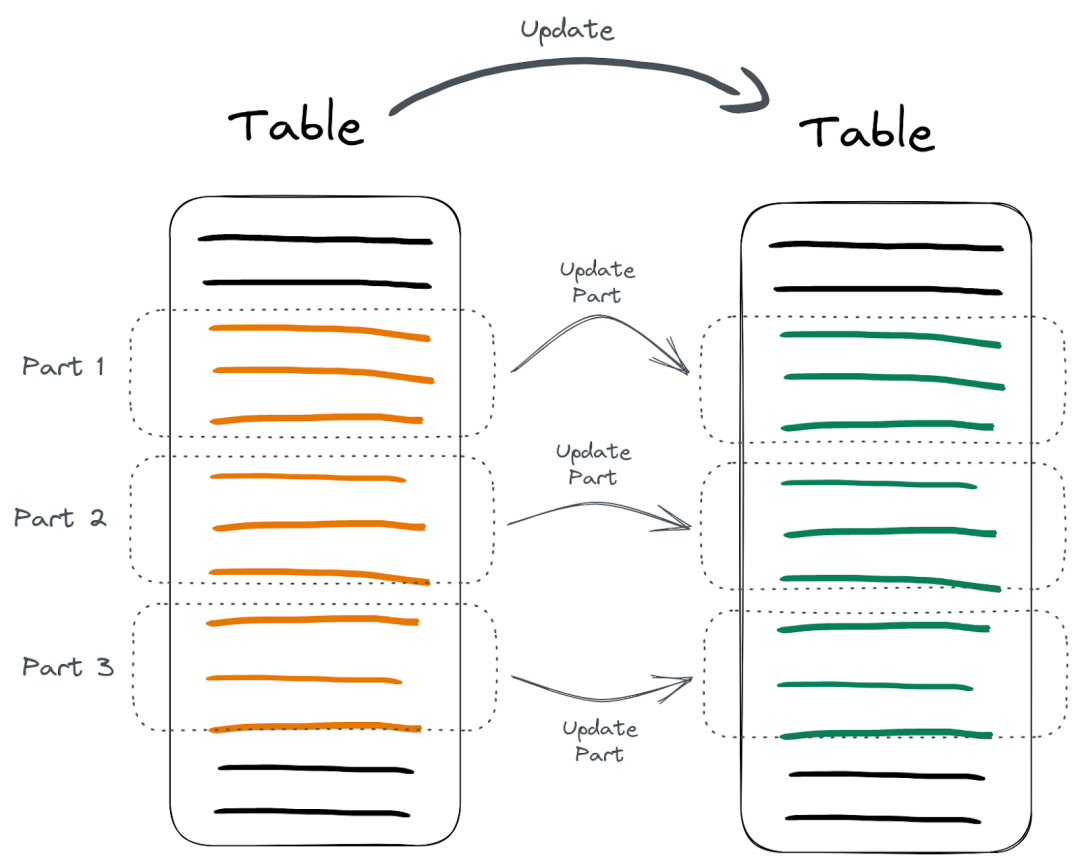 与某些数据库不同,ClickHouse 的 ALTER UPDATE 语句默认是异步的。这意味着更新是在后台进行的,您将不会立即在表上看到更新的效果。这种更新表的过程称为 mutations。