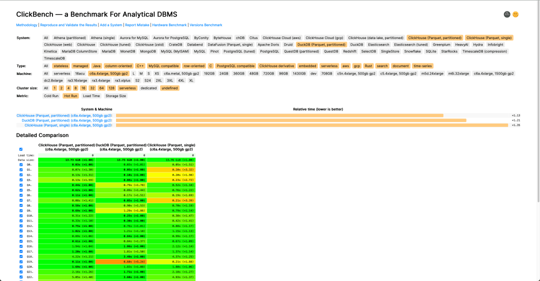 这一特定的改进也立即影响了我们的ClickBench的结果,如下所示: